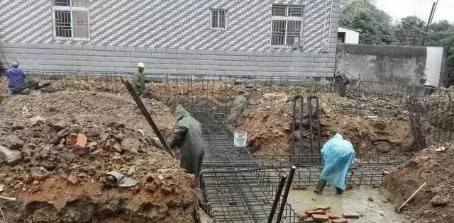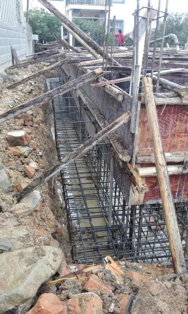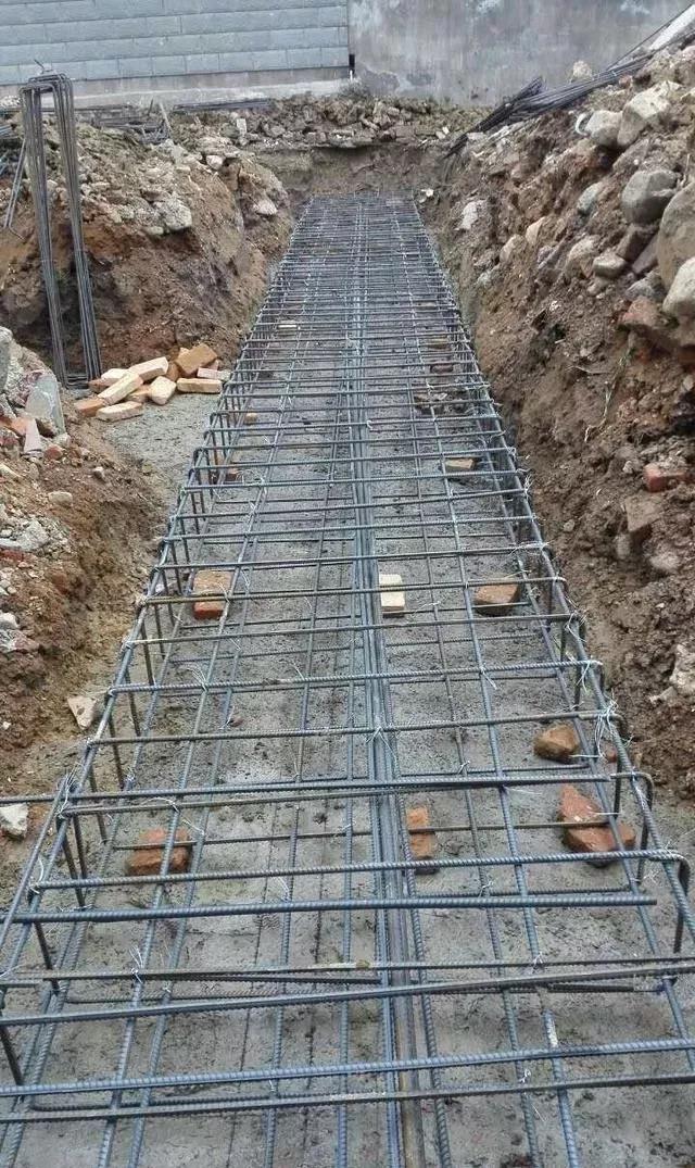 待基礎素混凝土養(yǎng)護完成后,綁扎鋼筋做地圈梁。