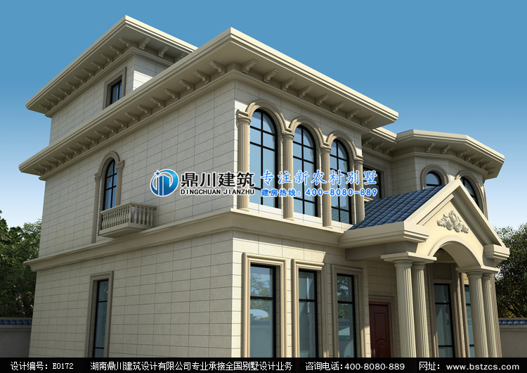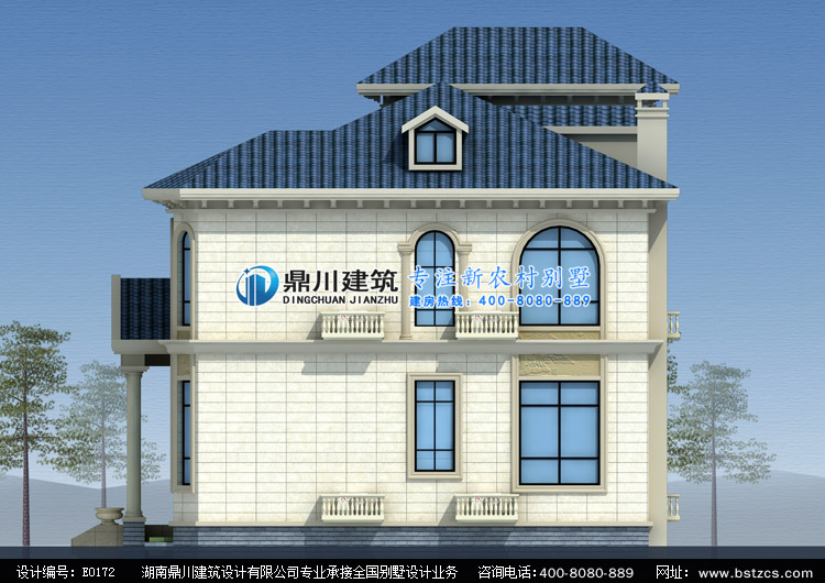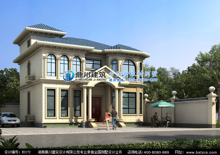 E0172漂亮的二層小別墅設計外觀效果圖,鼎川建筑別墅私人定制設計