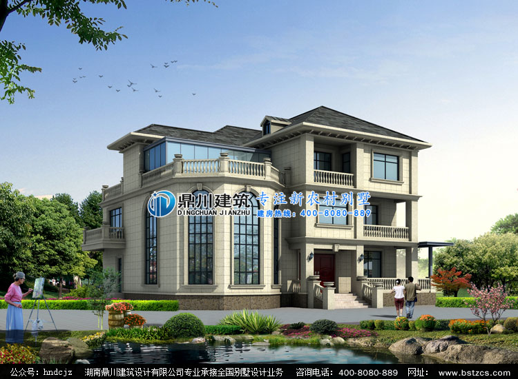 ZH005歐式三層帶露臺別墅設計圖效果圖,鼎川建筑歐式別墅設計