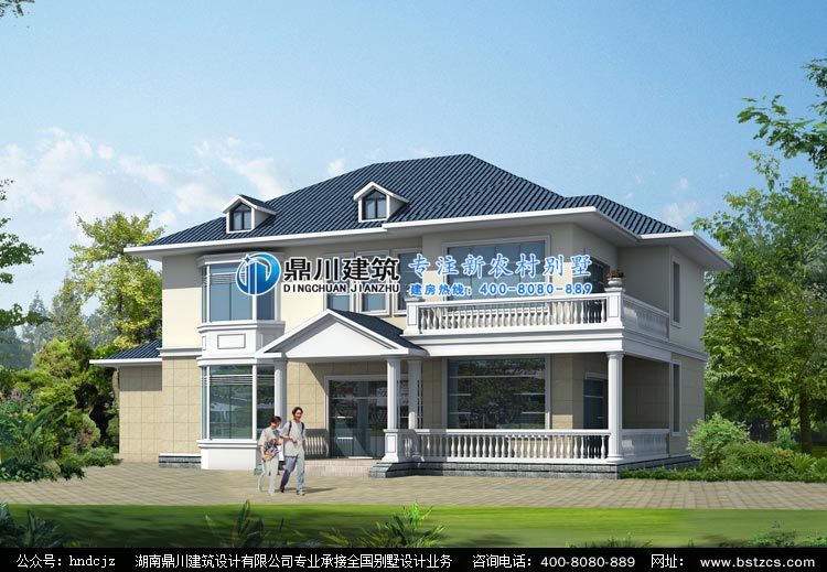 FS010二層農村自建別墅設計圖效果圖,鼎川建筑兩層別墅設計外觀效果圖