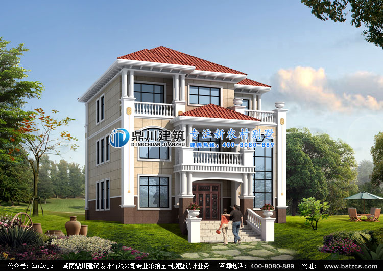 L0265漂亮大氣的三層小別墅設計圖紙外觀效果圖,鼎川建筑三層私人定制別墅設計