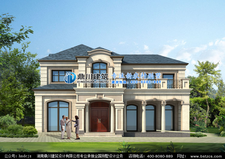 D0248漂亮的二層帶露臺歐式別墅外觀效果圖,鼎川建筑歐式別墅設計圖效果圖