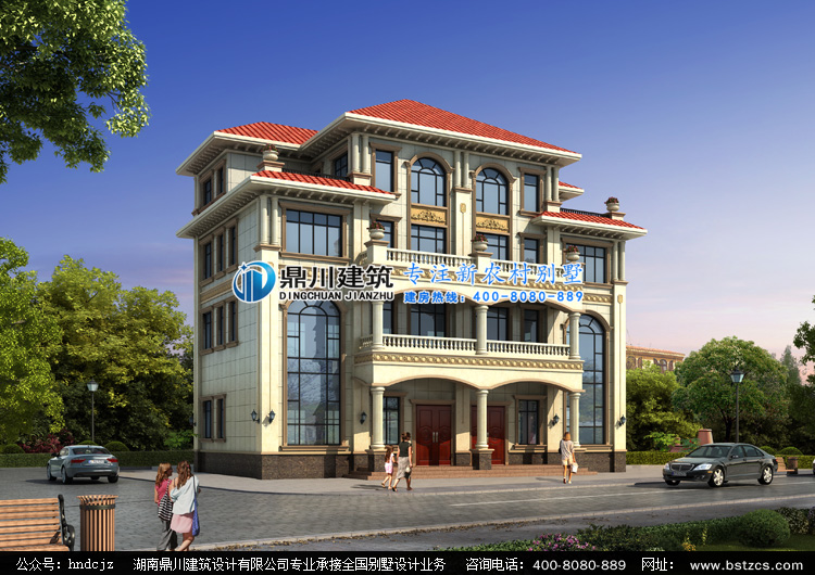 J0197四層歐式雙拼別墅設計圖效果圖,鼎川建筑歐式雙拼別墅設計