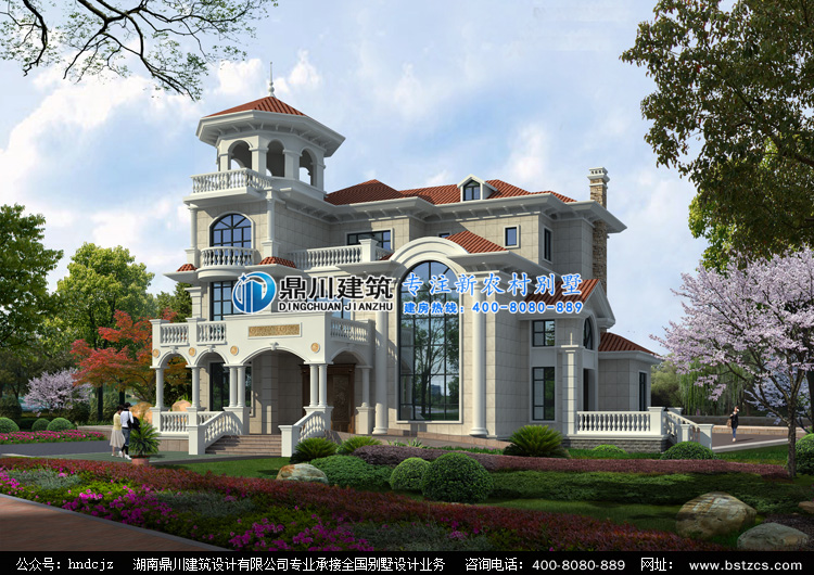 E090漂亮豪華的歐式三層別墅外觀效果圖,鼎川建筑私人定制別墅設計