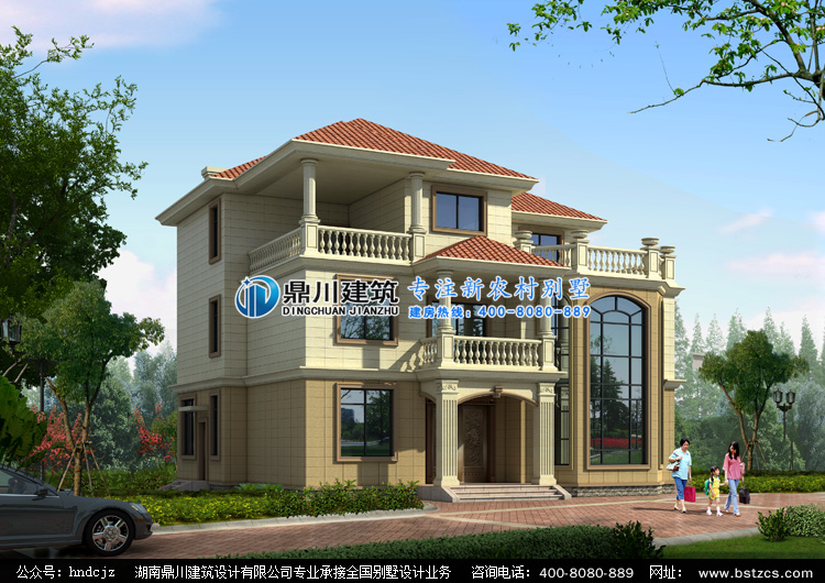 J0106復式三層別墅圖紙設計外觀效果圖,農村三層別墅私人定制設計