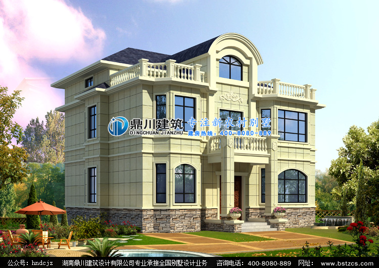L0277歐式三層帶露臺(tái)別墅外觀效果圖,鼎川建筑歐式別墅設(shè)計(jì)圖