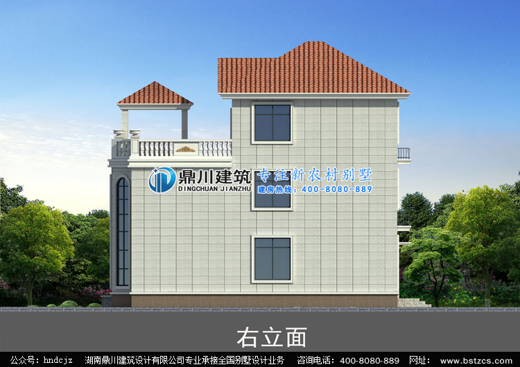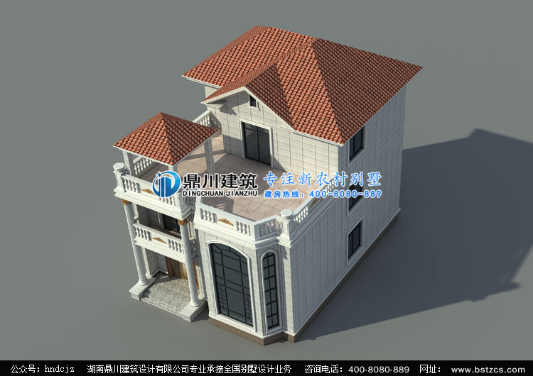 當(dāng)前位置: 首頁 > 設(shè)計案例 > WS014三層帶露臺農(nóng)村小別墅設(shè)計圖外觀效果圖,鼎川建筑三層別墅設(shè)計全方位效果圖