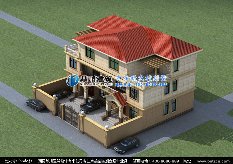XT007三層帶院子雙拼別墅設(shè)計(jì)圖效果圖,鼎川建筑兄弟雙拼別墅設(shè)計(jì)