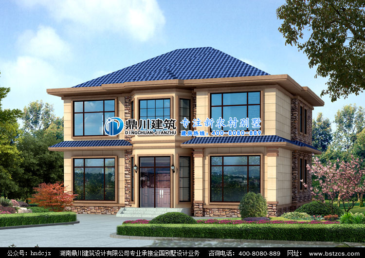 JL053新農村二層小別墅圖紙外觀效果圖,鼎川建筑農村兩層別墅設計