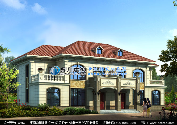 XT082二層雙拼別墅設(shè)計(jì)外觀效果圖,鼎川建筑兩層雙拼自建別墅設(shè)計(jì)圖