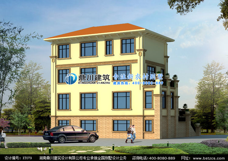 XT079四層歐式帶商鋪別墅設計圖紙外觀效果圖,鼎川建筑四層門面房別墅設計