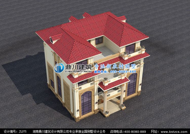 JL075豪華歐式四層別墅設(shè)計(jì)圖紙外觀效果圖,鼎川建筑四層歐式別墅私人定制設(shè)計(jì)