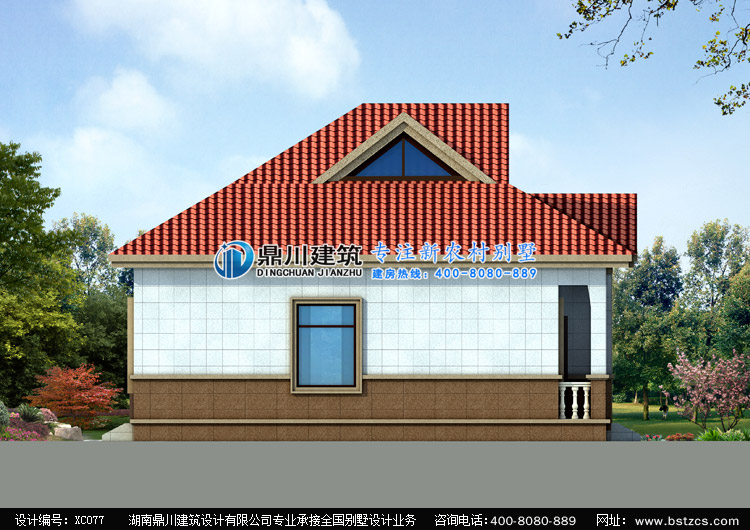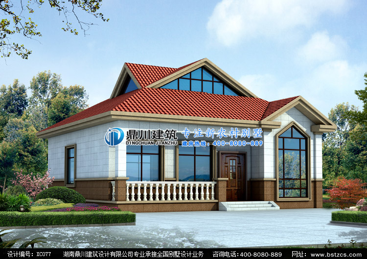 XC077漂亮的一層帶閣樓自建小別墅圖紙效果圖,鼎川建筑一層自建房屋設計圖外觀