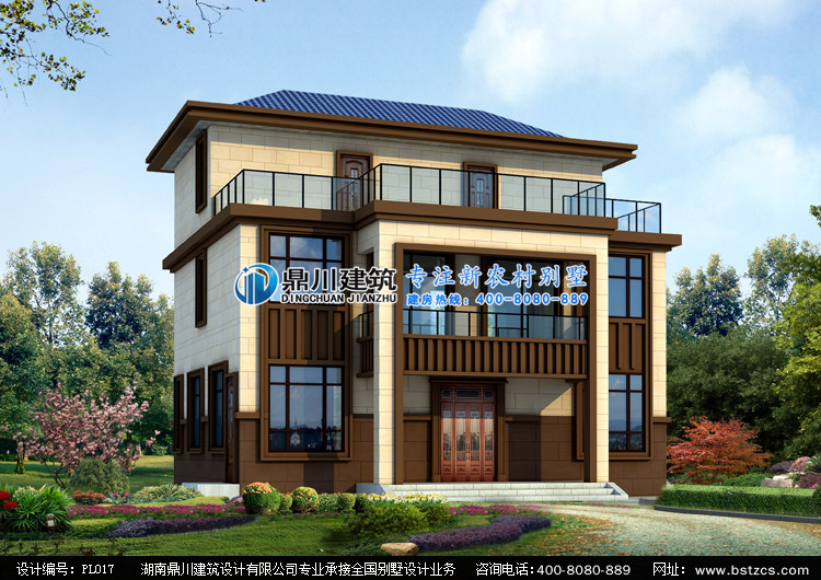 當前位置: 首頁 > 設計案例 > PL017三層新中式農村自建房設計圖紙效果圖,鼎川建筑三層農村別墅設計圖