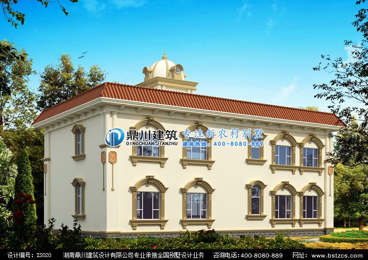 ZS020二層豪華歐式別墅設計圖紙外觀效果圖,鼎川建筑歐式別墅全方位效果圖設計