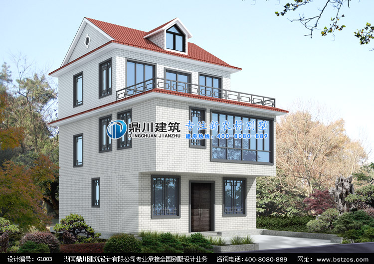 GL003三層帶露臺農村自建房設計圖效果圖,經濟型三層房屋設計圖外觀效果圖