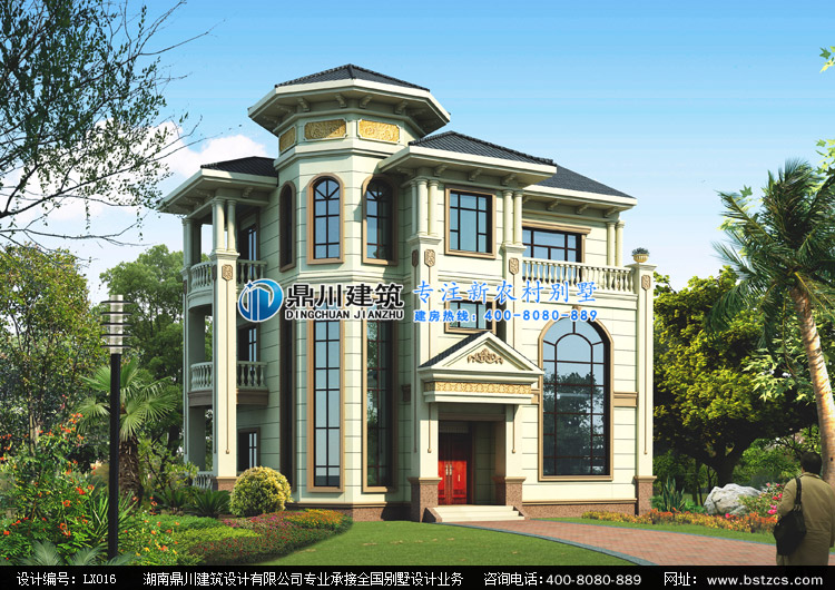 LX016歐式三層別墅私人定制設(shè)計外觀效果圖,鼎川建筑三層別墅圖紙設(shè)計