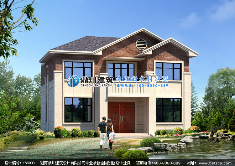 GWK003二層鄉村小別墅設計圖外觀效果圖,新農村兩層自建別墅圖紙設計