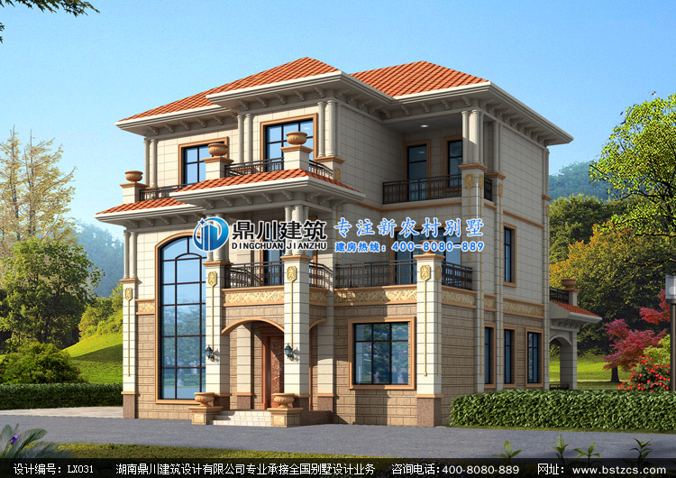 LX031復式三層帶露臺歐式別墅設計圖效果圖,鼎川建筑三層自建別墅圖紙設計