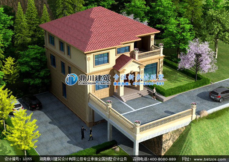 L0355二層帶地下架空車庫層的農村別墅設計圖外觀效果圖,鼎川建筑二層別墅私人定制設計