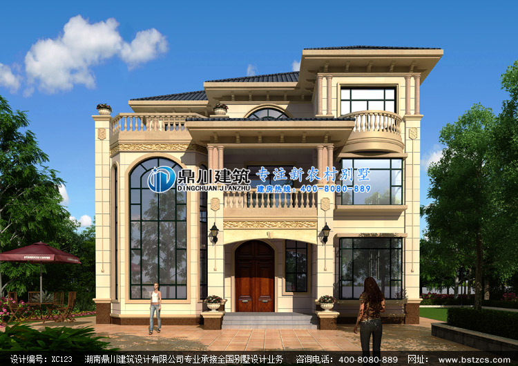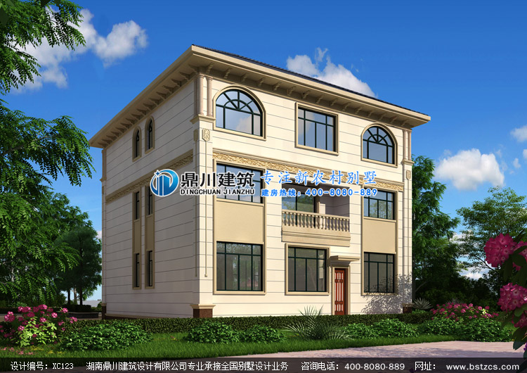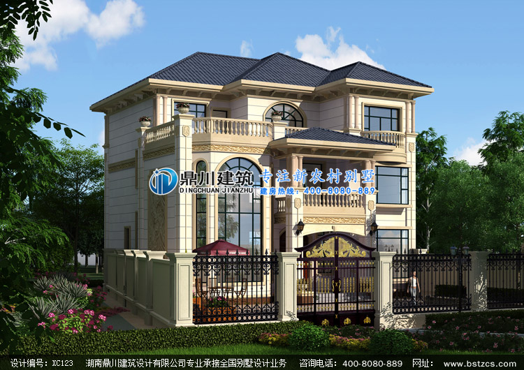 XC123新農村三層復式歐式別墅設計圖紙外觀效果圖,鼎川建筑三層別墅定制設計