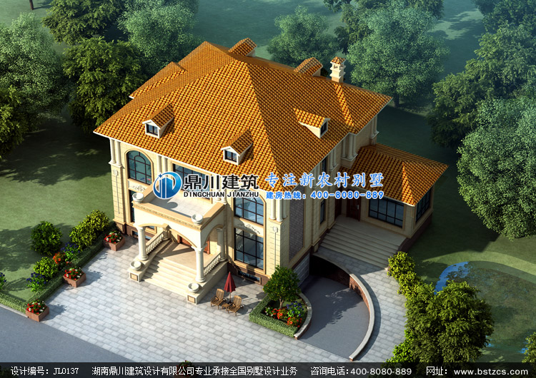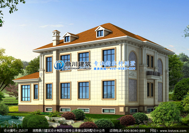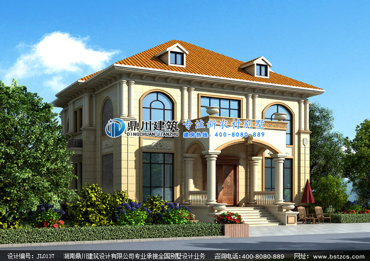 JL0137漂亮的二層帶露臺歐式別墅設計圖外觀效果圖,鼎川建筑三層農村別墅設計
