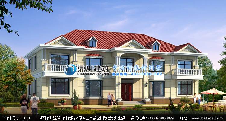 XC103新農村二層雙拼自建別墅設計圖效果圖,鼎川建筑兩層雙拼別墅定制設計