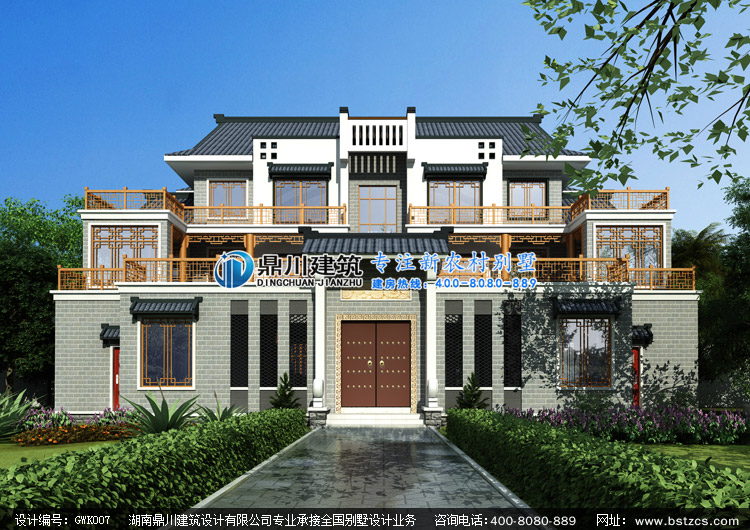 當(dāng)前位置: 首頁(yè) > 設(shè)計(jì)案例 > GWK007三層中式別墅設(shè)計(jì)圖紙外觀效果圖,中式三層農(nóng)村自建房屋設(shè)計(jì)圖效果圖