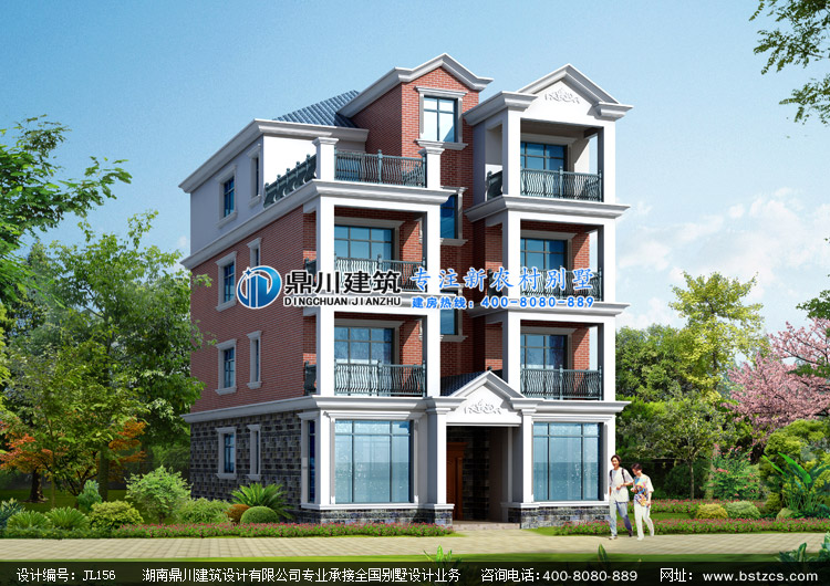 JL156新農村四層別墅設計圖紙外觀效果圖,鼎川建筑鄉村四層別墅圖紙設計