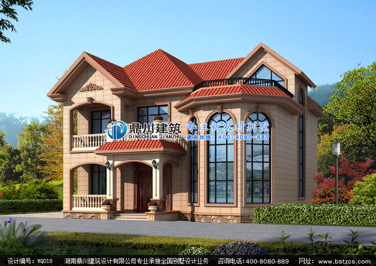 WQ018農村二層帶露臺歐式別墅設計圖效果圖,鼎川建筑兩層小別墅圖紙設計