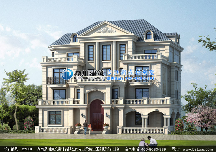 YZM008漂亮的四層帶地下室法式別墅設(shè)計(jì)圖紙效果圖,新農(nóng)村四層別墅設(shè)計(jì)圖紙