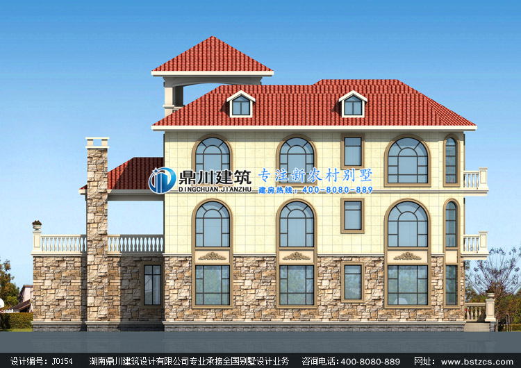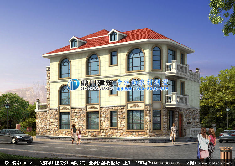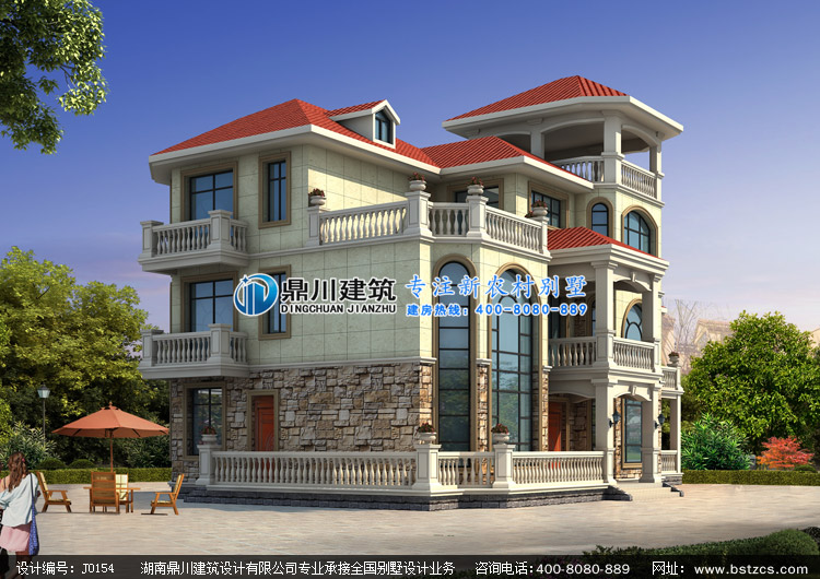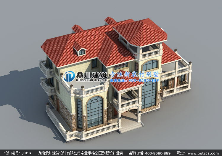 J0154復式三層帶涼亭歐式別墅設計圖紙外觀效果圖,鼎川建筑三層農村別墅圖紙私人定制設計