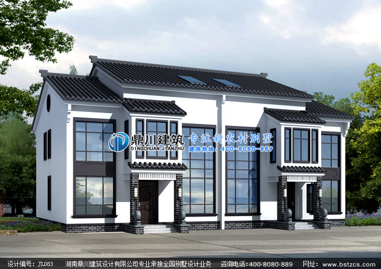 當前位置: 首頁 > 設計案例 > JL083中式二層帶閣樓雙拼自建房設計圖紙效果圖,中式二層雙拼別墅私人定制設計