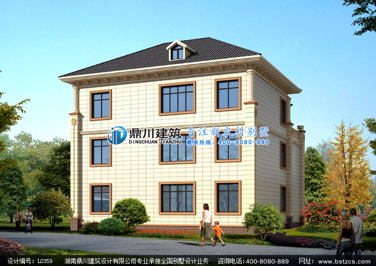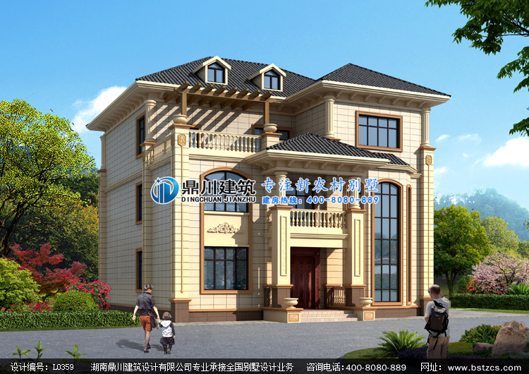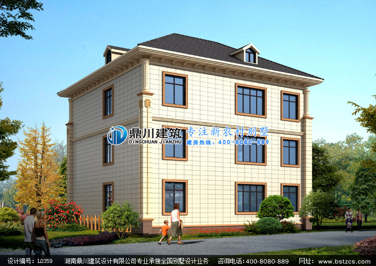 L0359復式三層歐式小別墅設計圖紙外觀效果圖,新農村三層自建別墅私人定制設計