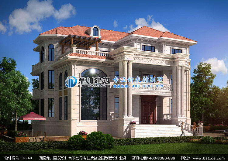 L0360復式三層豪華歐式別墅設計圖紙外觀效果圖,鼎川建筑三層歐式別墅私人定制設計