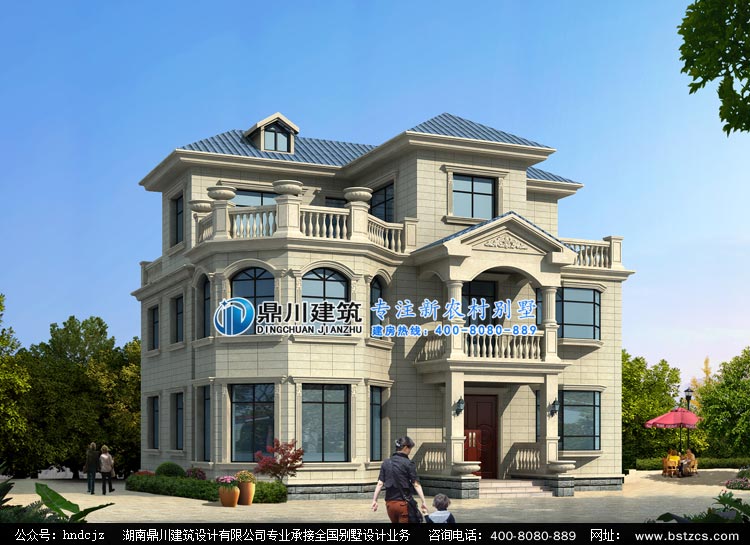 D0225歐式三層帶露臺別墅設計效果圖,鼎川別墅圖紙定制設計