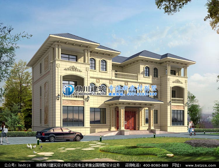 L0214三層豪華歐式別墅設(shè)計圖效果圖,鼎川建筑設(shè)計歐式別墅外觀效果圖