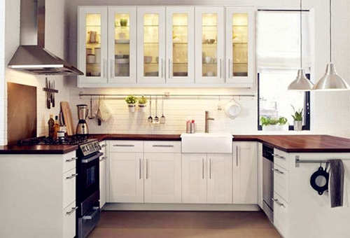 廚柜的設計多采用實木材料,但是柜門的嚴密性卻導致了取用物品的不便。采用玻璃柜門就可以解決這個問題,一目了然,提供了取用收納的便捷性,同時也能將物品做一個很好的展示。