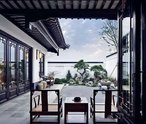 中式庭院,坐落千年。古時大國工匠,打造出了最適合中國人居住的中式居所。中國古典建筑講究色彩的搭配,建筑中粉墻黛瓦與自然景觀之間形成的色彩搭配與對比。