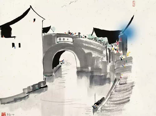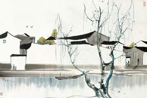 每個人的心中,都有一個江南。或許最美的,是吳先生筆下的那個江南。或許,那也是我們心中最美的江南。干凈的書風,寫意的場景,超實入境,超凡入圣。江南,因吳冠中而更美。江南建筑是漢族傳統民居建筑的重要組成部分,江浙水鄉注重前街后河,但無論南方還是北方的漢族,其傳統民居的共同特點都是坐北朝南,注重內采光;以木梁承重,以磚、石、土砌護墻;以堂屋為中心,以雕梁畫棟和裝飾屋頂、檐口見長。水墨畫的江南建筑,別有一番韻味!