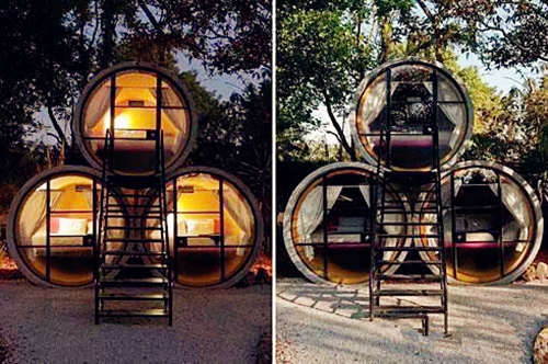提到住水泥管,我們腦海里想到的通常都是城市里無(wú)家可歸的人,在寒冷的夜里,住在某個(gè)橋洞下廢棄的水泥管子里。然而,國(guó)外卻有人把水泥管改造成了旅館或飯店,而且收益還不錯(cuò)。比如說(shuō)墨西哥Tepoztlan郊外的水管旅店(TubeHotel),設(shè)計(jì)師Andreas Strauss將直徑2.4米深3.5米的再生混凝土管設(shè)計(jì)成了旅館的房間,擺上一張大床開(kāi)一個(gè)窗戶(hù),拉上簾子就能住人了,床板和水泥管之間的空隙則可以用于儲(chǔ)物。