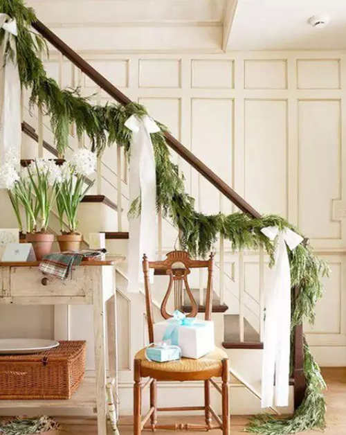 簡單的木質桌子和凳子都讓整個空間充滿自然的味道。如果家中的樓梯正好就在玄關旁邊的話這樣的設計也挺不錯的,能給人帶來不錯的第一映像。