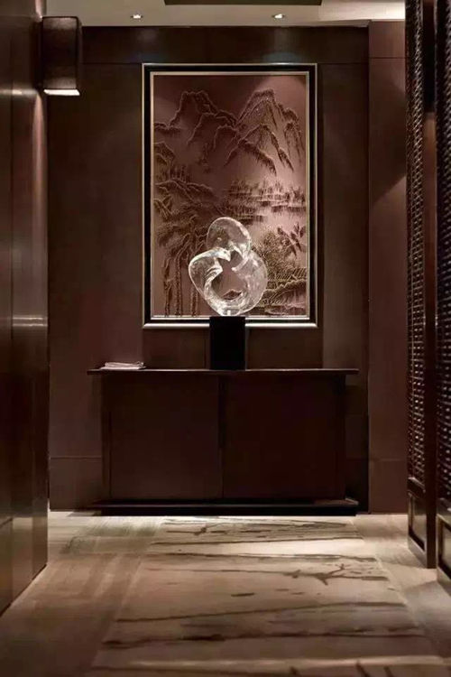 中國人自古就講究含蓄內斂,注重戶內隱私,因此,在新時代背景下演繹出來的新中式玄關在人們的心 理趨向與認同中應運而生。尊重傳統,又不固守傳統;傳承傳統,又施之以創新。