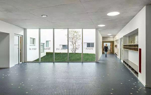 學校的一層是一個幼兒園和一個學齡前兒童的活動場地,其他兩層是小學,操場位于幼兒園的屋頂。較大一點的兒童可以直接從屋頂操場到達地面,不用穿過幼兒園區域。