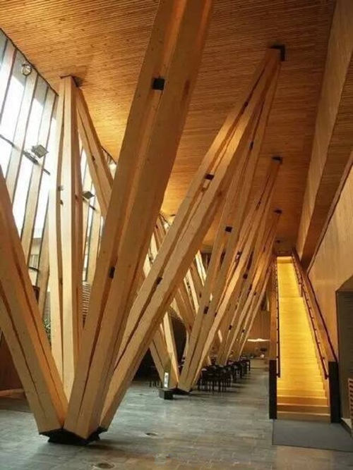 原木是建筑創作中最早被利用的自然元素之一。用原木打造的空間體現了原生態,具有回歸自然的意味,看上去沒有任何修飾,實際上原始木材的紋路、紋理是最自然的表現。“原木元素”材料不僅在造型、結構和用材上獨具一格,且在裝飾上能更好地彰顯出民族文化。