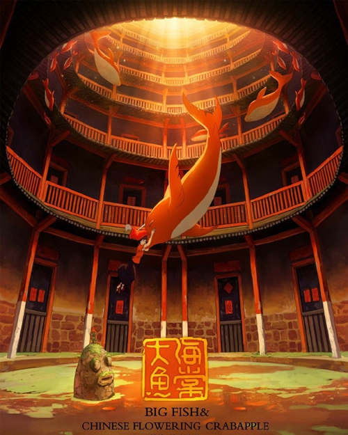 《大魚海棠》依照古老詩文和神話,還原古建筑,其實也是換了種方式去傳承中國古老的特色東方元素。相信每一個來到永定土樓的女孩,都希望在自己所喜歡的土樓建筑里突然飛來一條紅色大魚,它叫鯤。