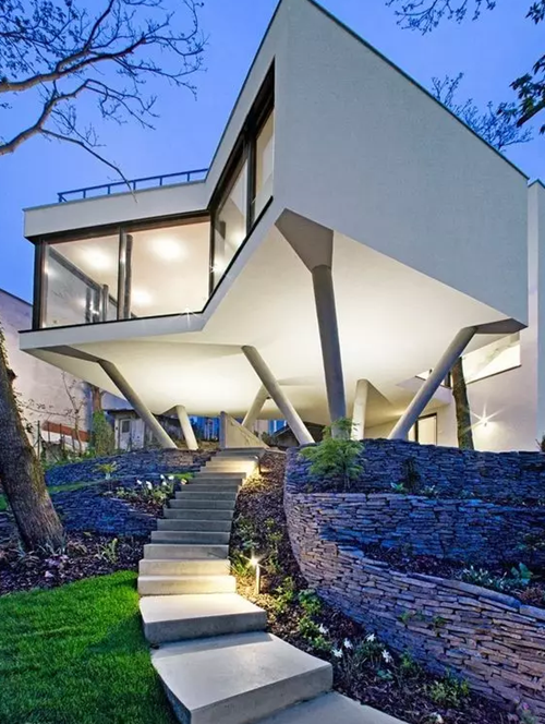 利用臺階解決高差是非常實用的方法,臺階可以是規則的,也可以是自然形狀的,吧自然式的臺階與草坪做一些變化交融,即可滿足庭院業主行走的需要,又能給人安逸閑適的感覺。