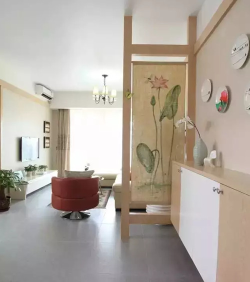 玄關(guān)是入門的第一道風(fēng)景線,可是,因?yàn)槊娣e的原因,往往沒有辦法盡情的設(shè)計(jì)和布局??墒牵鰹轭佒迪蠕h的玄關(guān)也不能注定被忽視,也許,只需要一幅裝飾畫,就能讓玄關(guān)生動起來。