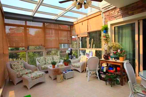 利用透明、半透明或者彩繪玻璃作為陽(yáng)臺(tái)頂面,優(yōu)點(diǎn)是采光充分,視野開(kāi)闊,給人清新而開(kāi)朗的體驗(yàn),缺點(diǎn)是清潔難度較大,長(zhǎng)期日曬雨淋下使用壽命會(huì)受影響。