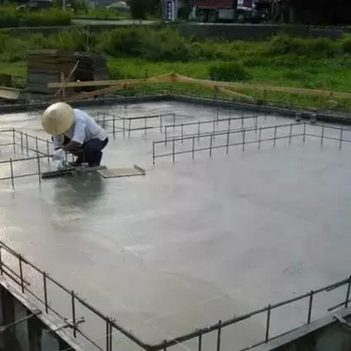 ▼基礎底板的混凝土澆筑完成后,進行壓實、找平處理。
